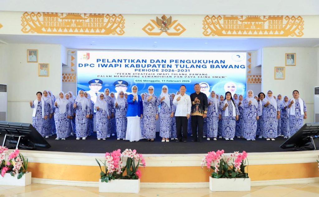 Clickinfo.co.id — Bupati Tulang Bawang, Drs. Qudrotul Ikhwan, M.M., secara resmi mengukuhkan jajaran pengurus Ikatan Wanita Pengusaha Indonesia (IWAPI) Dewan Pimpinan Cabang (DPC) Kabupaten Tulang Bawang. Pengukuhan berlangsung khidmat di Gedung Serba Guna (GSG) Menggala, Rabu (11/2/2026).